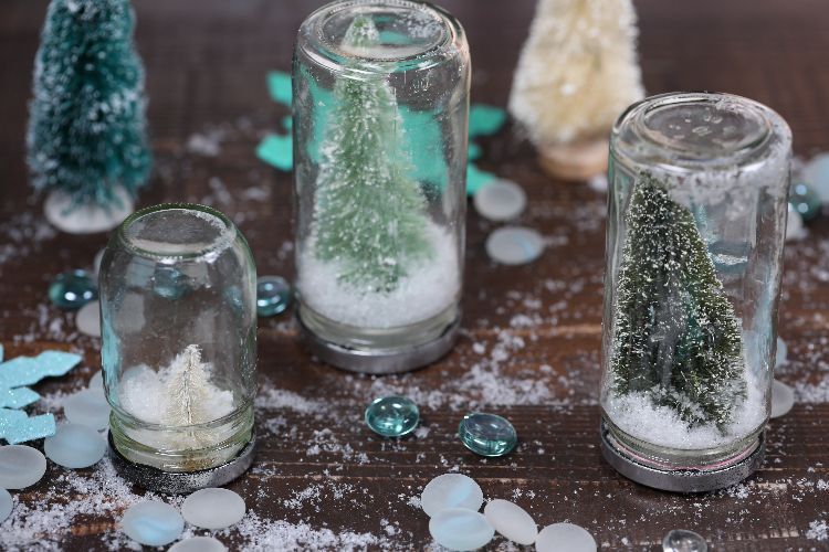 Estes globos de neve sem água são lindos, e seriam presentes inestimáveis para parentes e amigos na época de fim de ano, como decorações natalinas.