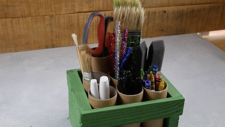 Organize sua escrivaninha ou a de seus filhos usando rolos de papel higiênico.